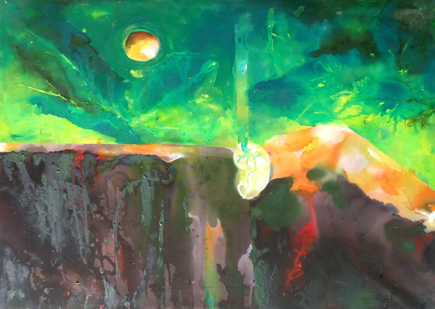 Acrylic fluid and chalk pastel on unprimed canvas- 80cm × 100cm, 2020.